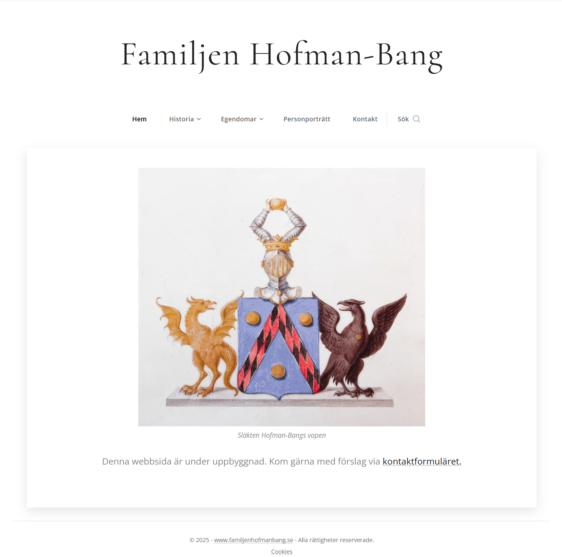 Redan år 1999 lanserades en hemsida för släkten Hofman-Bang på engelska. Under 2025 har ett arbete påbörjats att föra över en stor del av denna hemsida till svenska med de svenska och danska medlemmarna som målgrupp.
